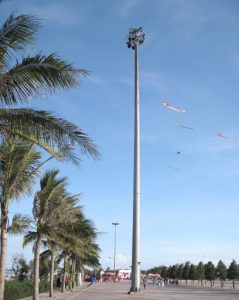 Trụ đa giác lắp giàn đèn nâng hạ. Trụ được chế tạo bằng thép cao từ 18-40m, có độ dày 4-8mm Dàn đèn có thể di chuyển lên xuống, dễ dàng cho việc bảo trì, Tốc độ nâng hạ dàn đèn 4-8m/1 phút.